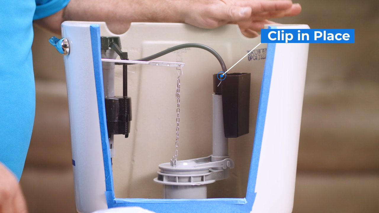 Water shoots through the refill tube and into the Happy Toilet™ to refill your toilet bowl.